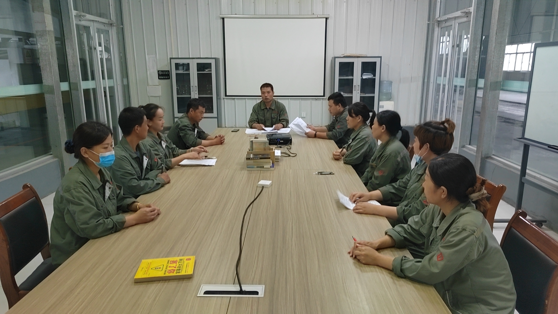 长吕志敏在公司二楼会议室组织各部门员工进行一堂以“风险分级管控与隐患排查