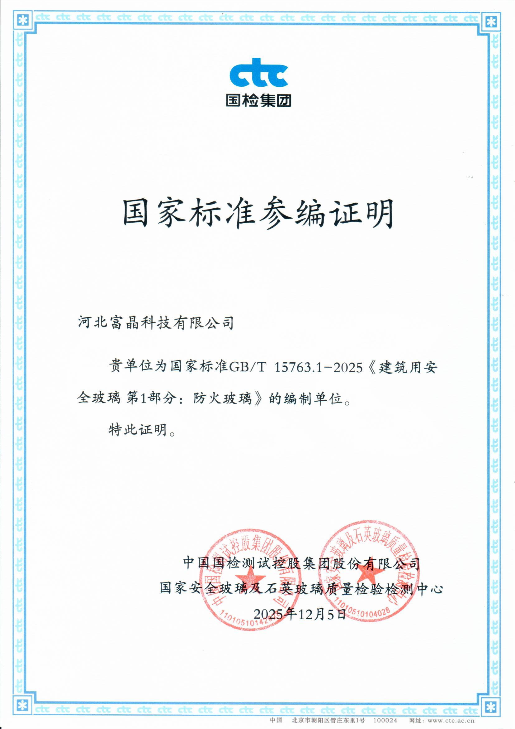 富晶科技|国家标准参编单位认证
